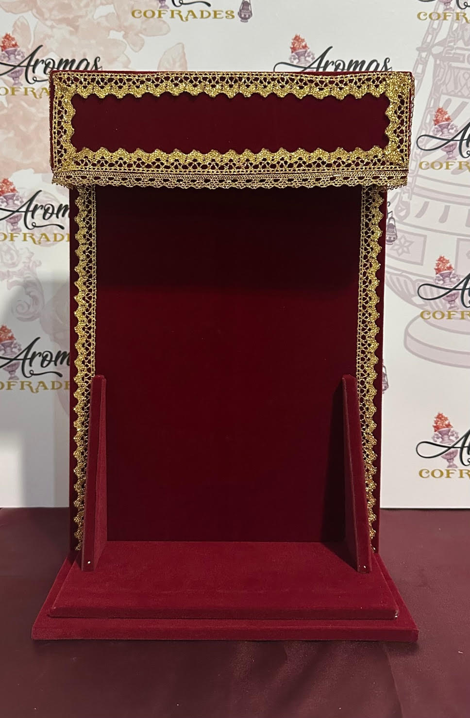 Dosel 36 cm de alto y 24 cm de ancho. Estructura de cartón pluma, bordados sobre tela.