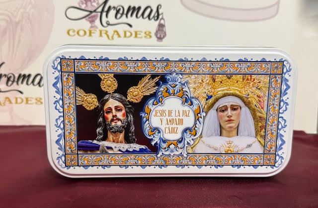 Lata metálica vacía 19*10*5 cm Nuestro Padre Jesús de la Paz y Nuestra Madre y Señora María Santísima del Amparo