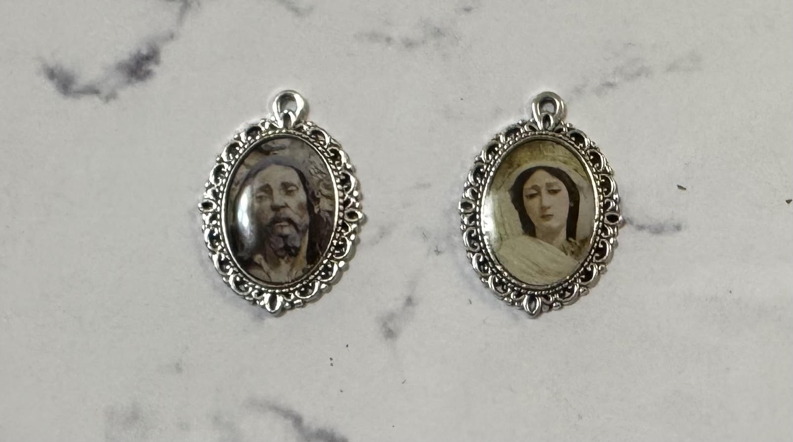 Medalla Jesús atado a la columna y azotes y María Santísima de las Lágrimas, 2×3 cm,  indicar modelo al realizar el pedido.