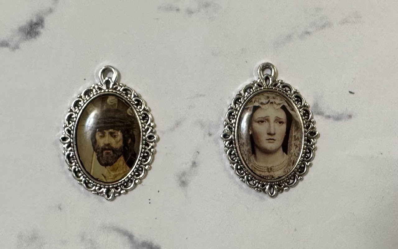 Medalla Nuestro Padre Jesús del Ecce-Homo y María Santísima de las Angustias, 2×3 cm,  indicar modelo al realizar el pedido.