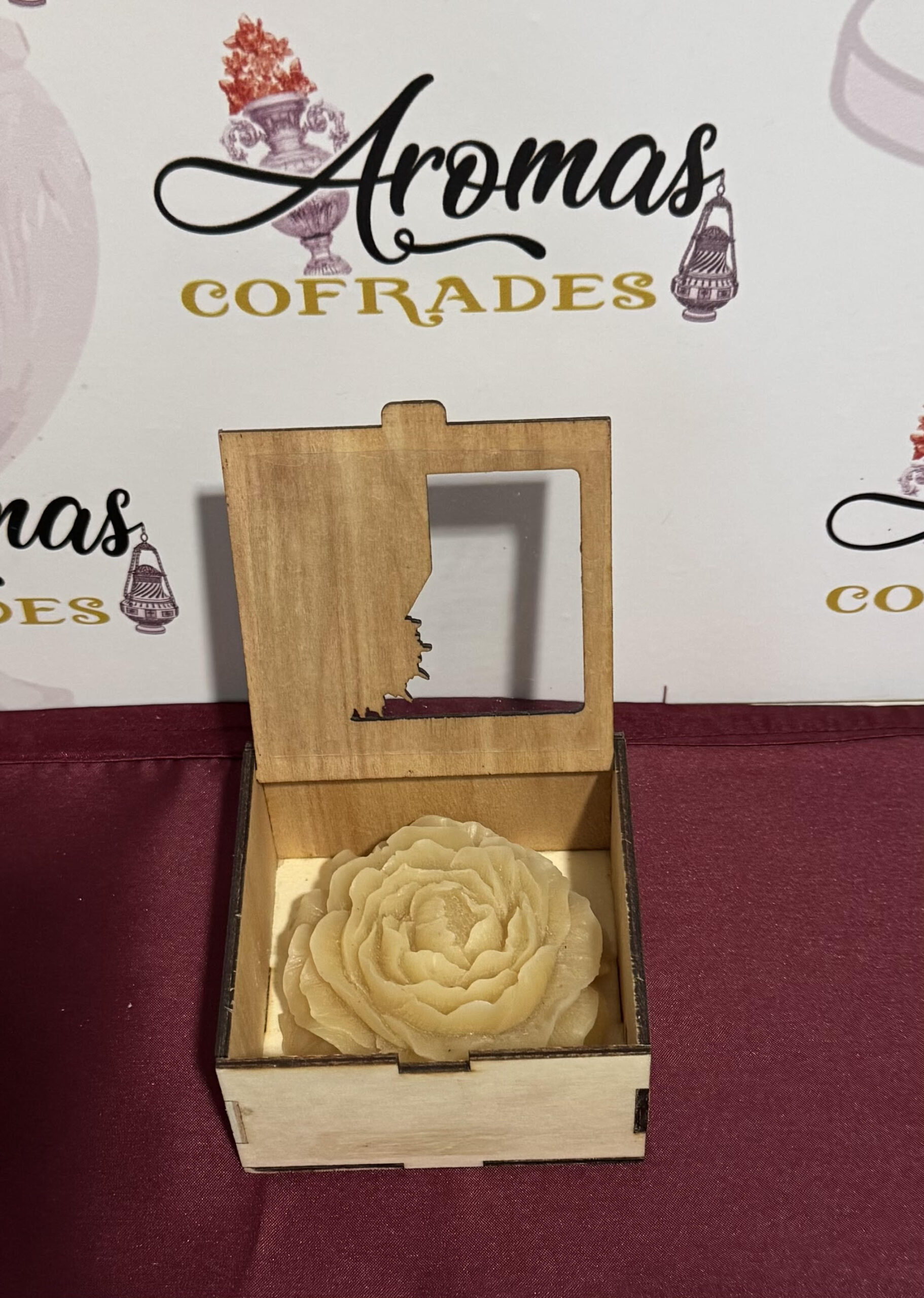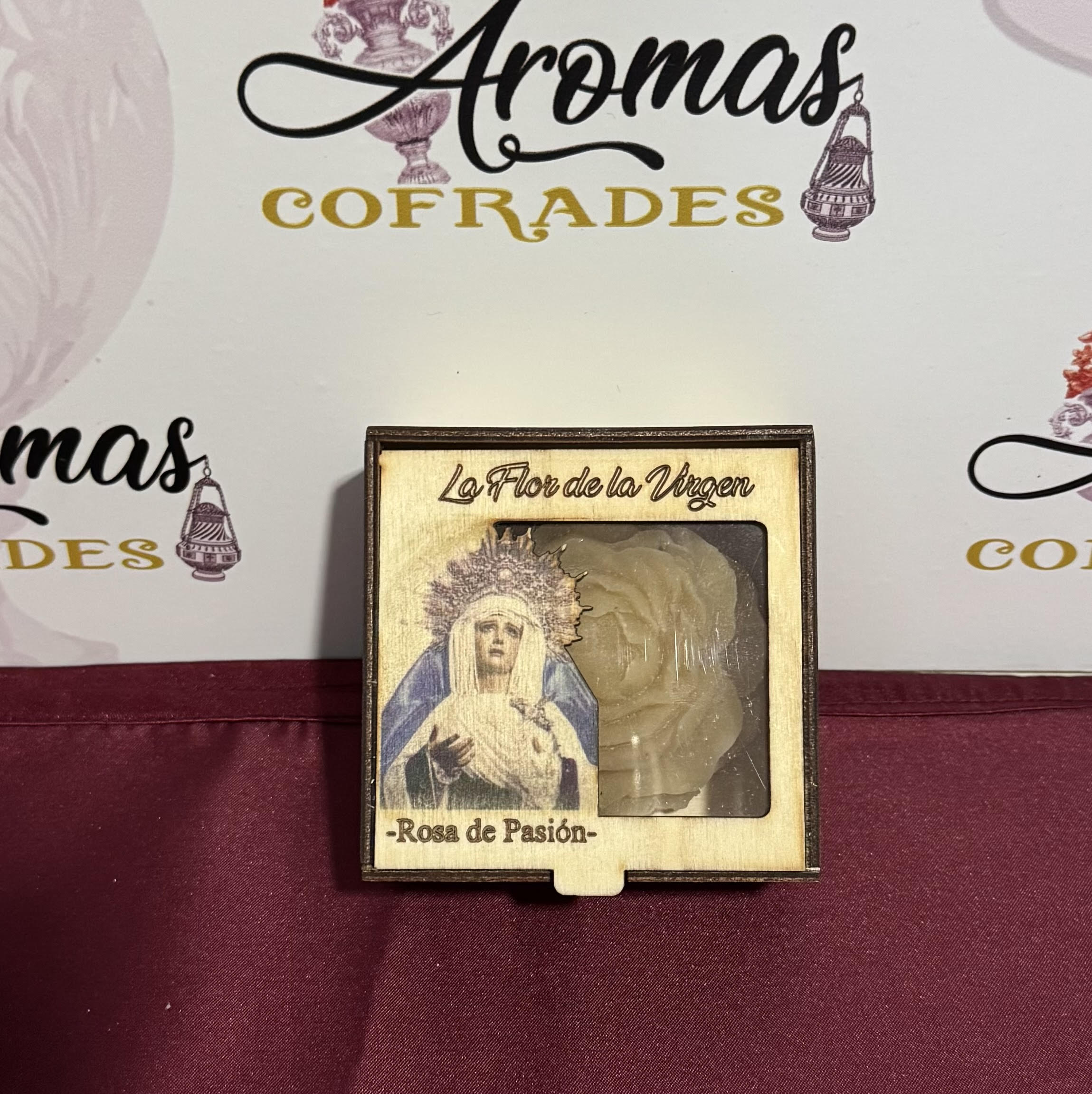 Flor de cera en caja de madera de María Santísima de los Dolores